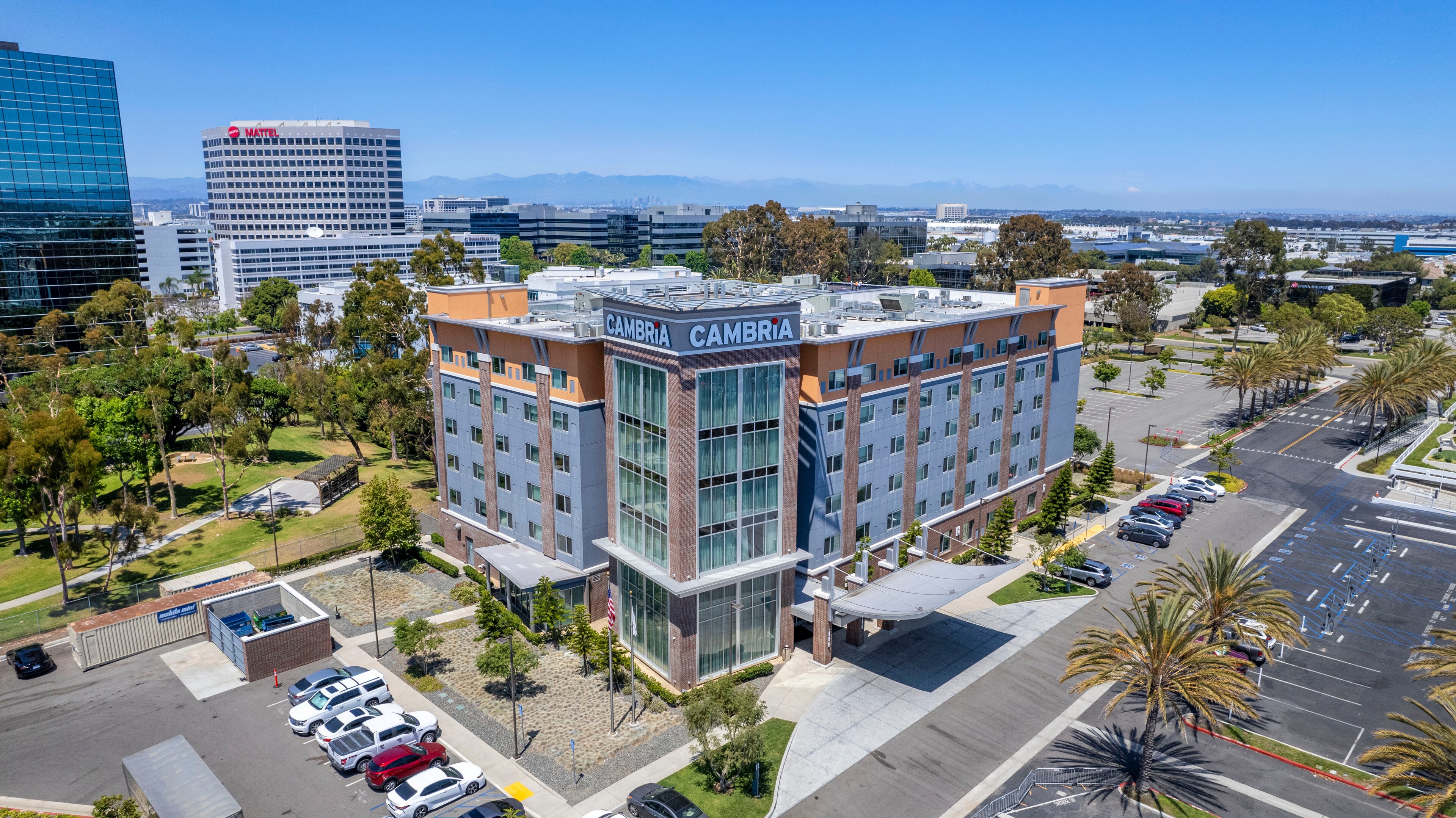 Just minutes from LAX, Cambria Hotel LAX offers modern amenities including free airport shuttle, a pool, fitness center, coworking spaces, and dining at The Hangar Bar + Kitchen.